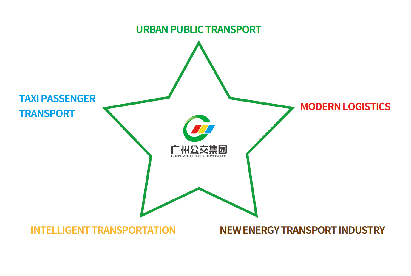 (abbreviated as GPG),established in December 2017, is the largest public road transportation enterprise in South China. It operates five major business segments: urban public transport, taxi services, modern logistics, smart transportation, and new energy transportation industries.The group employs approximately 52,000 staff and manages a fleet of nearly 27,000 vehicles, including buses, taxis,coaches, logistics trucks, recovery vehicles, and construction waste transport vehicles. It also operates 53 vessels, 580 bus terminals, 10 transport stations, and 25 Hello-bus-stations and pickup-points. Nationwide, GPG oversees 8 GSP-compliant pharmaceutical logistics hub centers and has constructed and centrally manages 181 bus charging stations with 6,843 charging piles. Notably, it has developed two nationally recognized benchmark projects for three-dimensional bus charging parking facilities: the Yanling Integrated New Energy Low-Carbon Industrial Demonstration Park (Tianhe District) and the Shima Comprehensive New Energy Low-Carbon Industrial Demonstration Park (Baiyun District).