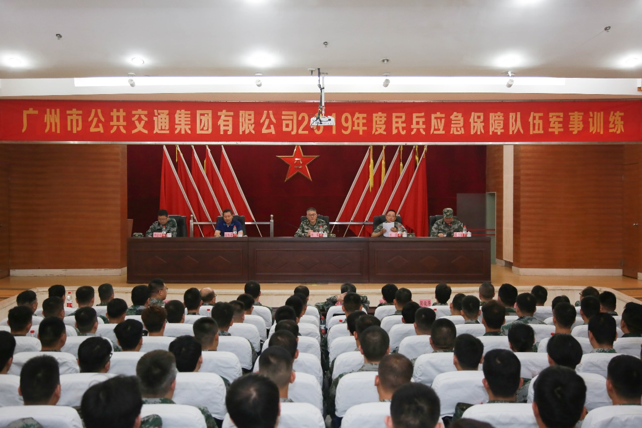 5月26日下午16:00時(shí),廣州市公共交通集團(tuán)有限公司2019年度民兵應(yīng)急保障隊(duì)伍軍事訓(xùn)練動(dòng)員大會(huì)在番禺國(guó)防教育訓(xùn)練基地順利舉行。越秀區(qū)人武部部長(zhǎng)鄭磊上校、交通運(yùn)輸局戰(zhàn)備處金鐵軍副處長(zhǎng)、公交集團(tuán)臨時(shí)黨委副書記楊軍同志、安全總監(jiān)兼武裝部部長(zhǎng)莊清溪同志、黨委工作部部長(zhǎng)胡金禮同志及各參訓(xùn)單位分管武裝工作的領(lǐng)導(dǎo)出席了會(huì)議。